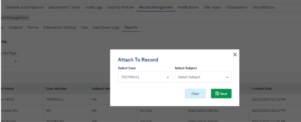 - If the Report is not linked to any Case or Subject, then it can be attached to a case/subject from the Action menu, the Attach Record option.