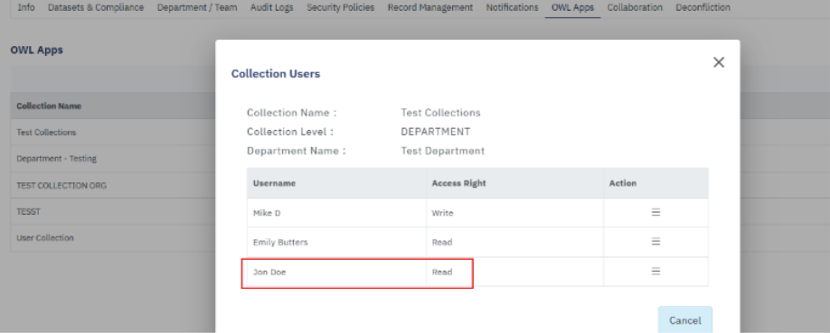 - A pop-up will open with access rights options. Select what access right the user needs to have for the collection.