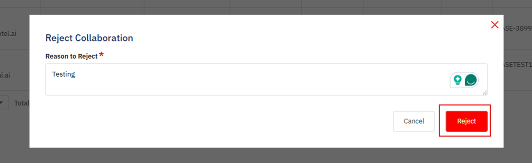 - Both the requester and the external collaborator will receive an email stating that the request was rejected.